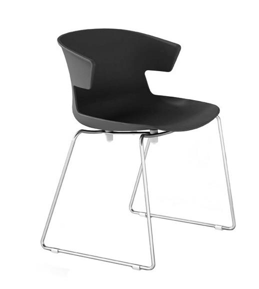 9600150 - Chaise de réunion empilable gamme Leo coloris noir avec > Structure : en tube d'acier époxy noir