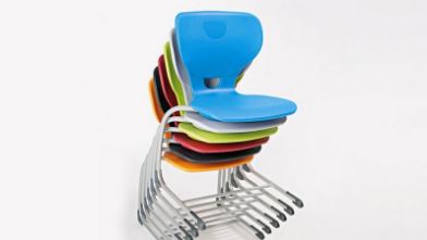 Chaise FLEXO avec appui sur table - Réf : 7854 - Piètement en forme de C - Équipée d’embouts floorsafe® - Hauteur disponible : T2 à T7 - Empilable par 4 - Poids : 5,8 Kg (T6) - La chaise FLEXO : la ROLLS des assises - Coque plastique ergonomique en polypropylène robuste et recyclabl