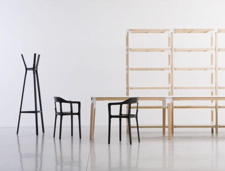 - La chaise est disponible en 3 coloris monochrome ou 4 compositions avec l'assise et le pietement bois : Galvanisé / hêtre, acier noir / noyer américain, acier blanc / hêtre, acier noir / hêtre.