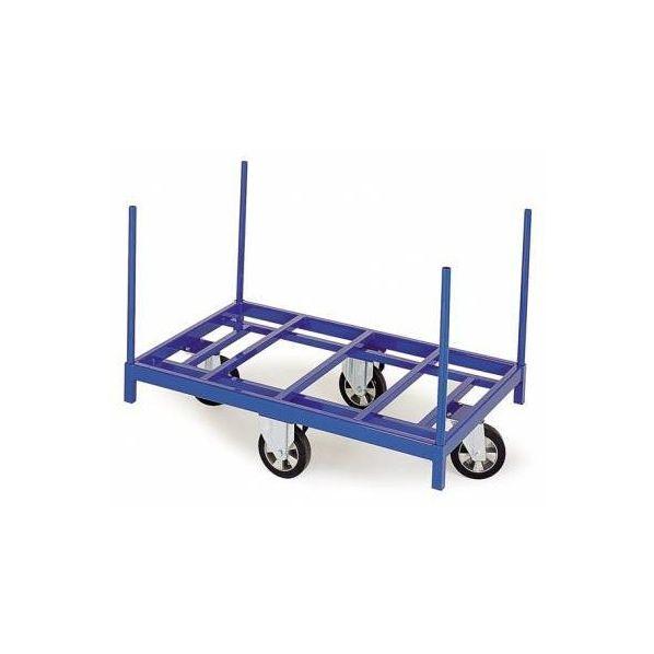 Plateau roulant entièrement soudé avec 4 montants. - Charge admissible 1200kg - 2 roues fixes et 2 roues pivotantes à frein - Coloris bleu gentiane RAL 5010 - 3 modèles : - Dimensions hors tout 1380x880mm, Référence 02 - 1238 - Dimensions hors tout 1680x880mm, Référence 02 - 1240 - Di