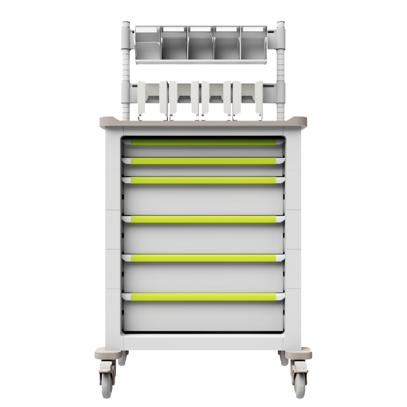Le système EasyMov, limitant les efforts physiques lors de l'utilisation, fait de ce chariot un réel atout au quotidien. Combiné à la solution P20, proposant un rangement optimisé et organisé des produits, il est idéal pour effectuer les soins. Le concept EasyClip permet une mise en place sim