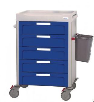 Chariot de soins bleu Novimed 5 tiroirs de H/155 équipé