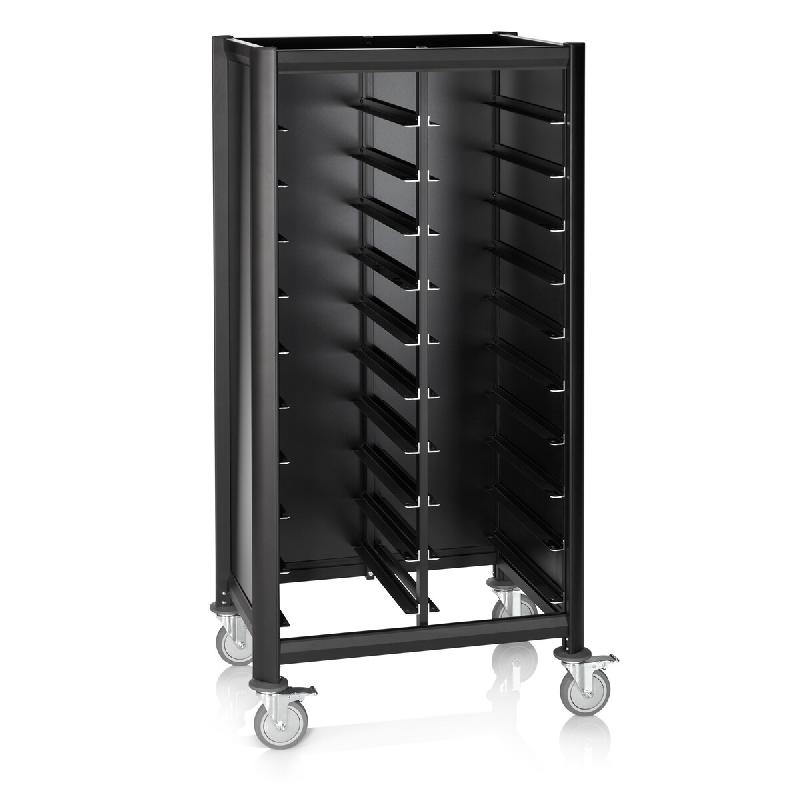Chariot à plateaux 51,5 x 47,5 x 165 cm 10 plateaux noir MDF aluminium MENSA BLACK - Was GermanyCe plateau est conçu pour une utilisation professionnelle et s'intègre facilement dans une organisation de service exigeante.profilés en aluminium avec parties latérales en MDF. 4 roulettes pivotant