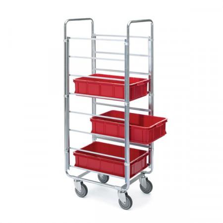 Chariot à glissière pour bacs N. E 600x400 mm ou Gastronorme, nombre de niveau selon hauteur des bacs, chariot avec roues polyamide dont 2 avec frein. - Domaine d'utilisation: - __