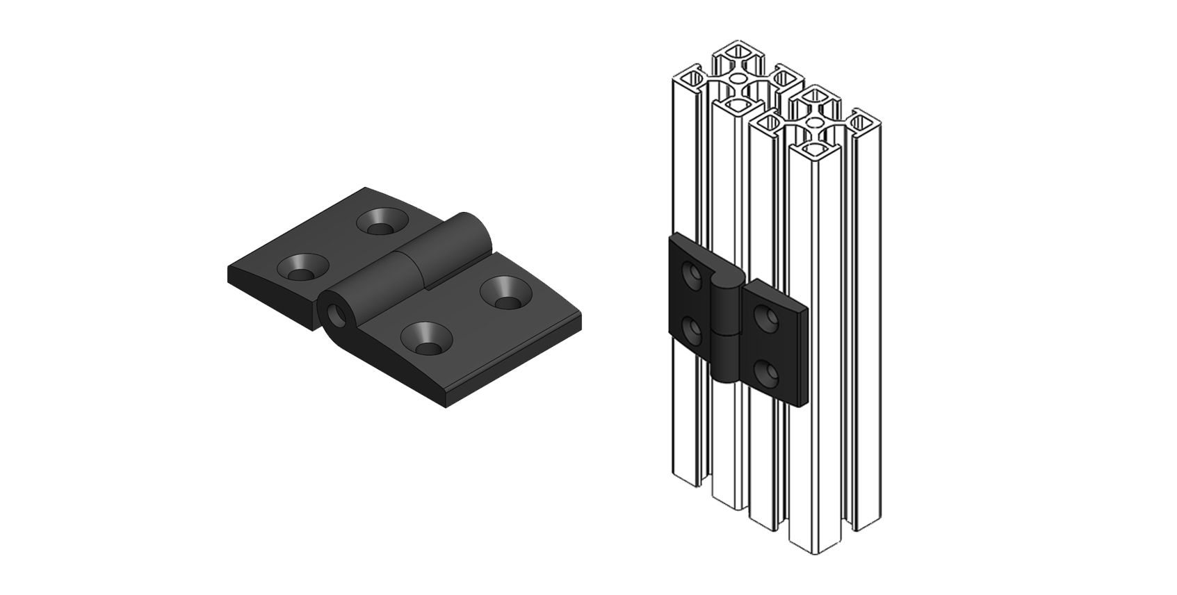 Charnières dégondables pour profilé aluminium rainure de 8 mm de la gamme 30, 40 et 45.