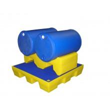 2502550 - SUPPORT POUR 2 FÛTS, CAPACITE 200 L :La forme du support pour fûts en polyéthylène permet le stockage ordonné et sécuritaire des fûts ou des bacs utilisés lors des travaux. Le support permet de les positionner en position horizontale et de les relever du sol, facilitant ainsi les