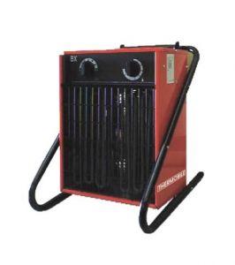 Chauffage d'atelier robuste d'une puissance de chauffe de 9 kW maximum, munis d'un ventilateur et d'un thermostat d'ambiance. - Alimentation : 400 V – 50 Hz - Protection : IP X4 - Consommation max. : 13 A - Puissance de chauffe max. : 9kW - Puissance calorifique : 7739 kcal/h - Nivea