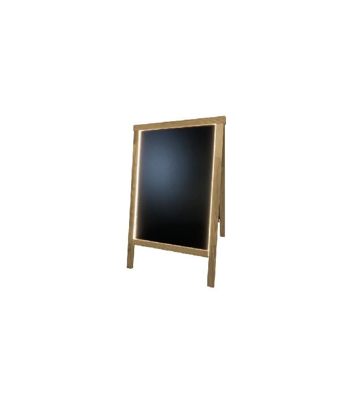 Chevalet stop trottoir de dimensions 90 x 55 cm avec cadre en bois. Eclairage lumineux LED sur les deux faces.