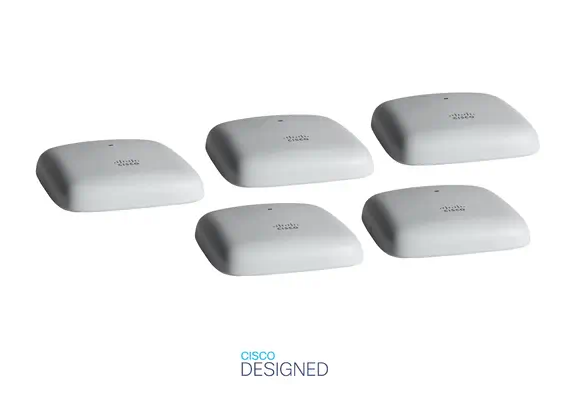 Le multipack de cinq points d'accès Cisco Business 140AC offre une solution sans fil MU-MIMO (2x2) professionnelle pour permettre à une PME de démarrer rapidement. Idéale pour la couverture Wi-Fi en intérieur, l'offre groupée Cisco Business 140AC offre un accès sans fil hautement sécurisé et fiable qui peut être configuré en quelques minutes.