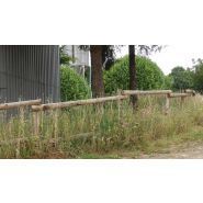 Clôture de carrière en bois traité autoclave classe 4, composée des éléments suivants : - Poteaux ronds appointés : hauteur de 2 m, diamètre de 120 mm. - 2 lices en demi - rond : longueur de 2,50 m, diamètre de 120 mm. -