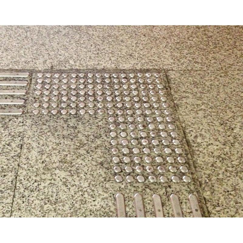 TEXTE DE LOI (ARRÊTÉ DU 01/08/2006, ARTICLE 7.1)« En haut d'un escalier, un revêtement de sol doit permettre l'éveil de la vigilance à une distance de 0,50 m de la première marche grâce à un contraste visuel et tactile » - Avantages :Le Clou Podotactile est une solution élégante et pér