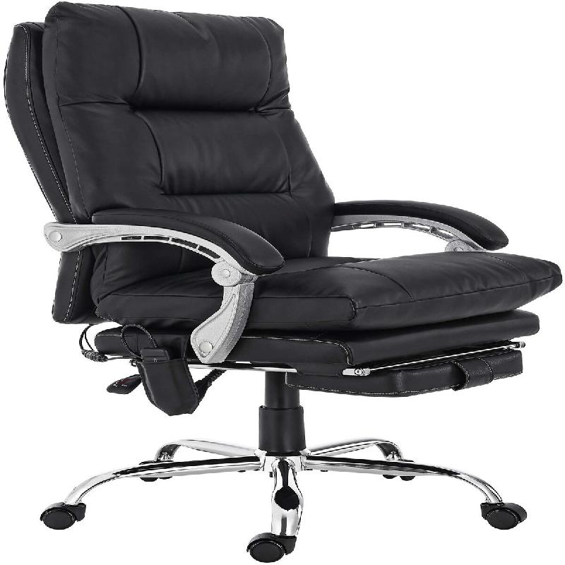Le cadre en métal robuste au fini chromé offre une stabilité pour une charge allant jusqu'à 150 kilogrammes. Les roulettes en PU et la conception pivotante apportent flexibilité et liberté de mouvement dans l'espace de travail. Les accoudoirs rembourrés et le repose-pieds extensible augmentant le confort assis, complétées par le noyau ergonomique à ressorts ensachés et le revêtement en similicuir résistant.