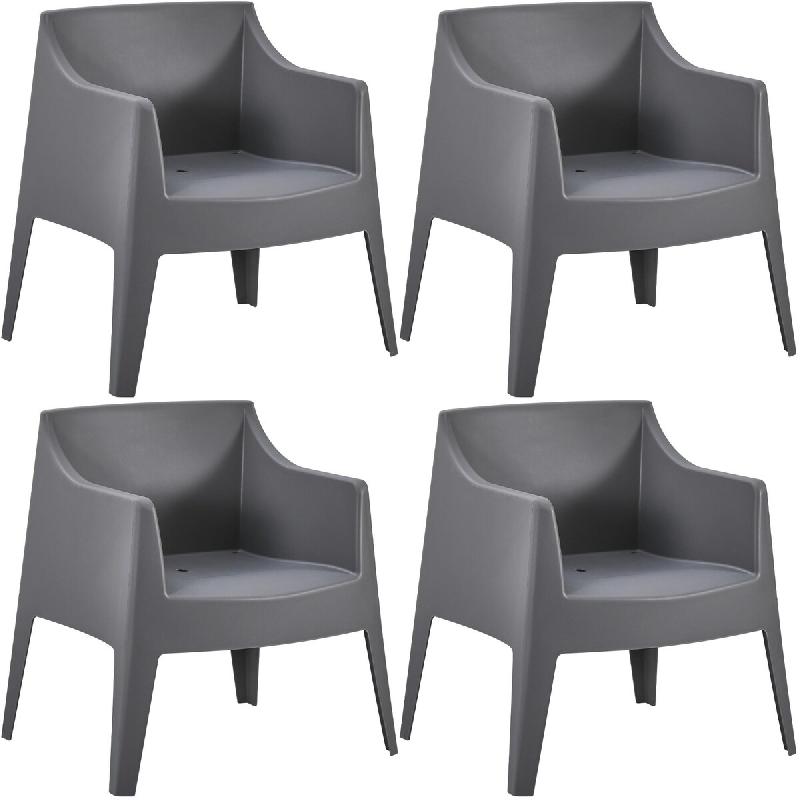 CLP Ensemble de 4 chaises de jardin Bartal Gris foncé - gris plastique 327745