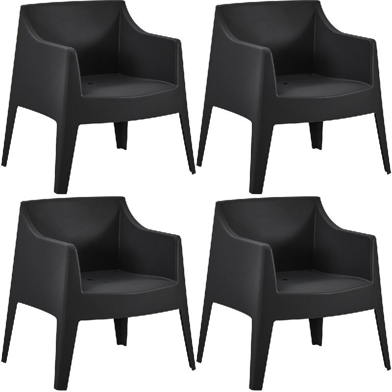 CLP Ensemble de 4 chaises de jardin Bartal Noir - noir plastique 327742