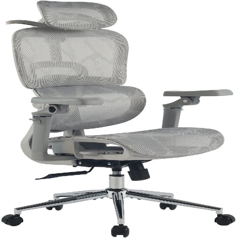 Le filet en nylon de qualite assure une bonne circulation de l air et limite l accumulation de chaleur. Le pietement en acier chrome et le verin a gaz de classe 3 permettent une charge maximale jusqu a 150 kg. Le mecanisme papillon autorise le verrouillage de l inclinaison sur trois positions, tandis que les roulettes silencieuses assurent des deplacements discrets.