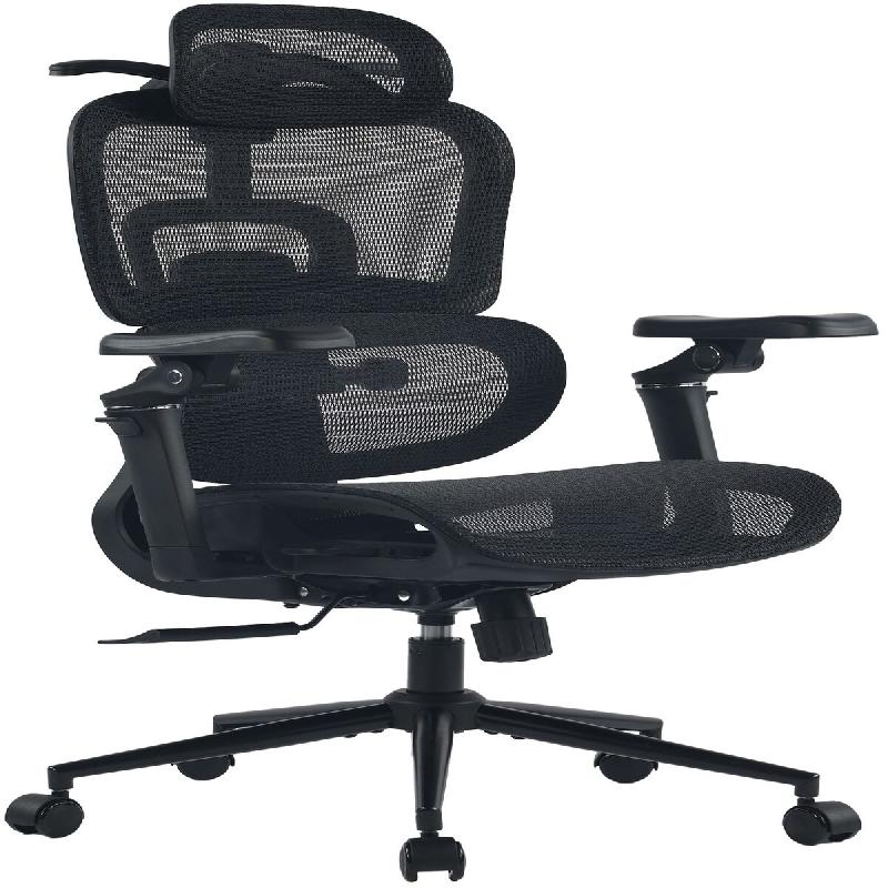 Le filet en nylon de qualite assure une bonne circulation de l air et limite l accumulation de chaleur. Le pietement en acier chrome et le verin a gaz de classe 3 permettent une charge maximale jusqu a 150 kg. Le mecanisme papillon autorise le verrouillage de l inclinaison sur trois positions, tandis que les roulettes silencieuses assurent des deplacements discrets.