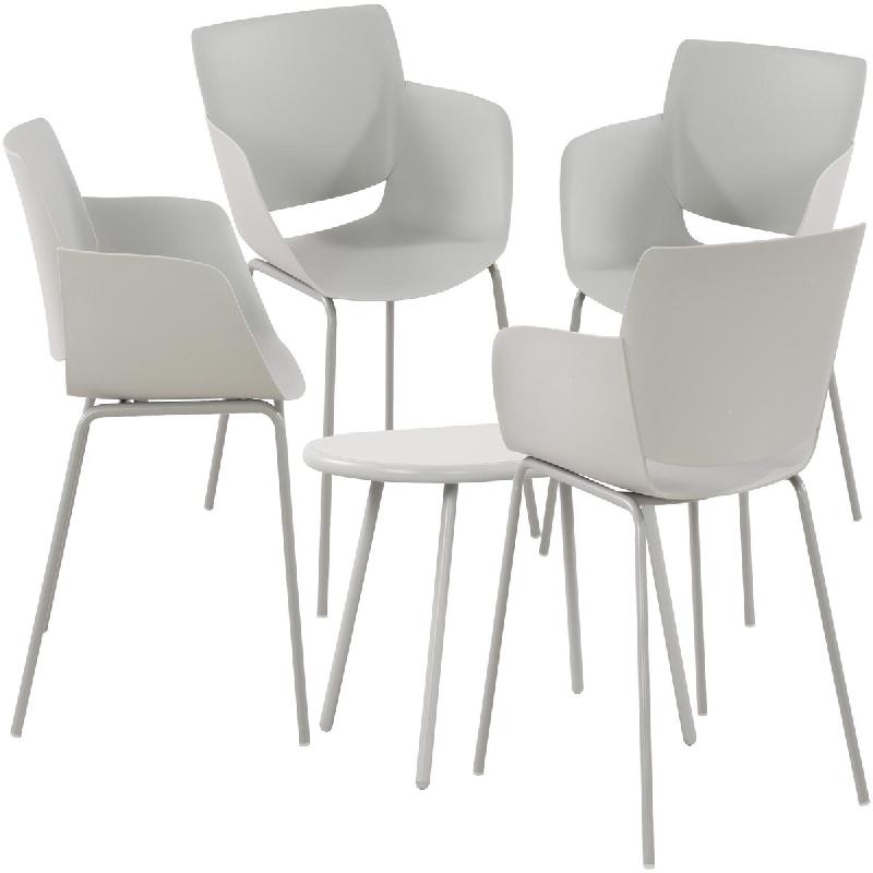 L'ensemble de 4 sièges Mindin - Cet ensemble de sièges Mindin est une combinaison élégante de la table basse Minot et de quatre chaises empilables Hardin. Les couleurs sont assorties. Grâce à ses propriétés matérielles, ce groupe de salon est parfaitement adapté à une utilisation en extÃ