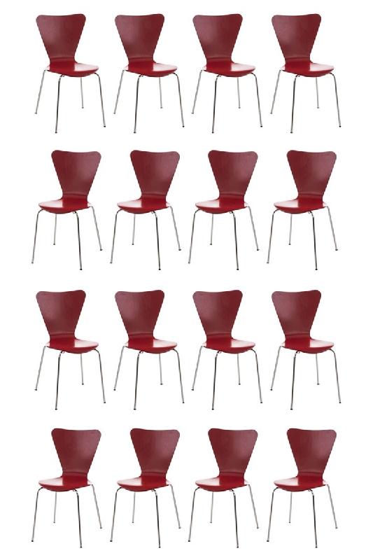 CLP Lot de 16 chaises visiteur empilables Calisto Rouge - rouge Bois manufacturé 151455205