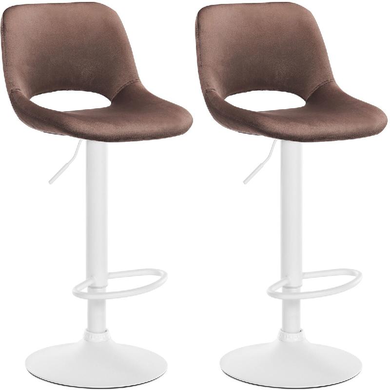 CLP Lot de 2 tabourets de bar Camden velours Marron/Métal blanc mat - marron textile 325163