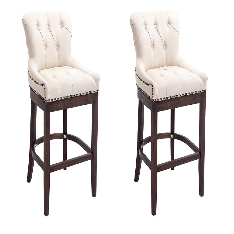CLP Lot de 2 Tabourets de Bar Lakewood en Tissu Crème/Antique - beige textile 304574