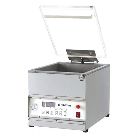 Description - Construit entièrement en acier inoxydable AISI 304. - Couvercle transparent. - Double soudure. - L'entrée progressive de l'atmosphère (Soft Air). - Panneau de contrôle numérique. - Soudage pneumatique (sans fil). - Démontage facile des barres de soudage. - Équipé de pol