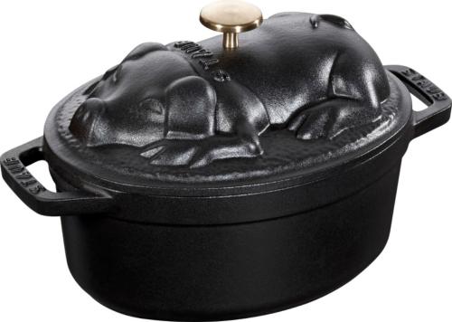 Cocotte cochon Staub en fonte - 17 cm - Coloris noir - Contenance 1 litre