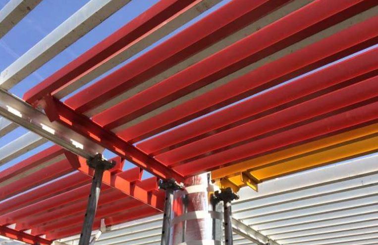 GRIDFLEX est un coffrage de dalle flexible en aluminium à système de poutrelles modulaire pour épaisseurs de dalles allant jusqu'à 67 cm.
