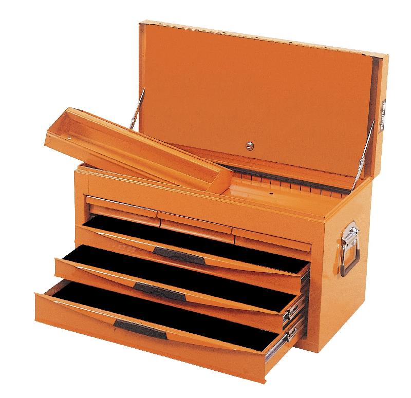Coffre à outils à 5 tiroirs.Caractéristiques : - Avec couvercle qui couvre les tiroirs une fois fermé - Deux poignées solides de part et d'autre du coffre - Serrure à clé - Chaque tiroir peut contenir 4 TC trays, 2 TTD trays ou 2 TED trays - Version profonde: 1 tray TTX peut être placé