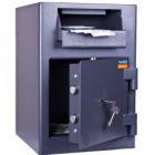 Coffre - fort de dépôt de fondsCaractéristiques : - Dimensions extérieures : H: 600 x 460 x 460 mm - Dimensions intérieures : H: 380 x 454 x 422 mm - Volume : 73 litres - Poids : 45 kg - Serrure : à combinaison électronique - Équipement : Une tablette -