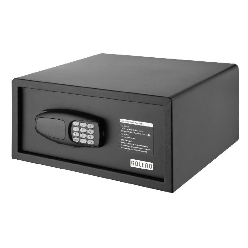 200(H)x310(L)x200(P)mm Le coffre - fort de chambre d'hôtel de Bolero offre aux clients un endroit sûr pour ranger leurs effets personnels. Le clavier frontal facile à utiliser permet aux utilisateurs de définir un code invité personnalisé de 3 à 6 chiffres, tandis que la doublure en tapis dou