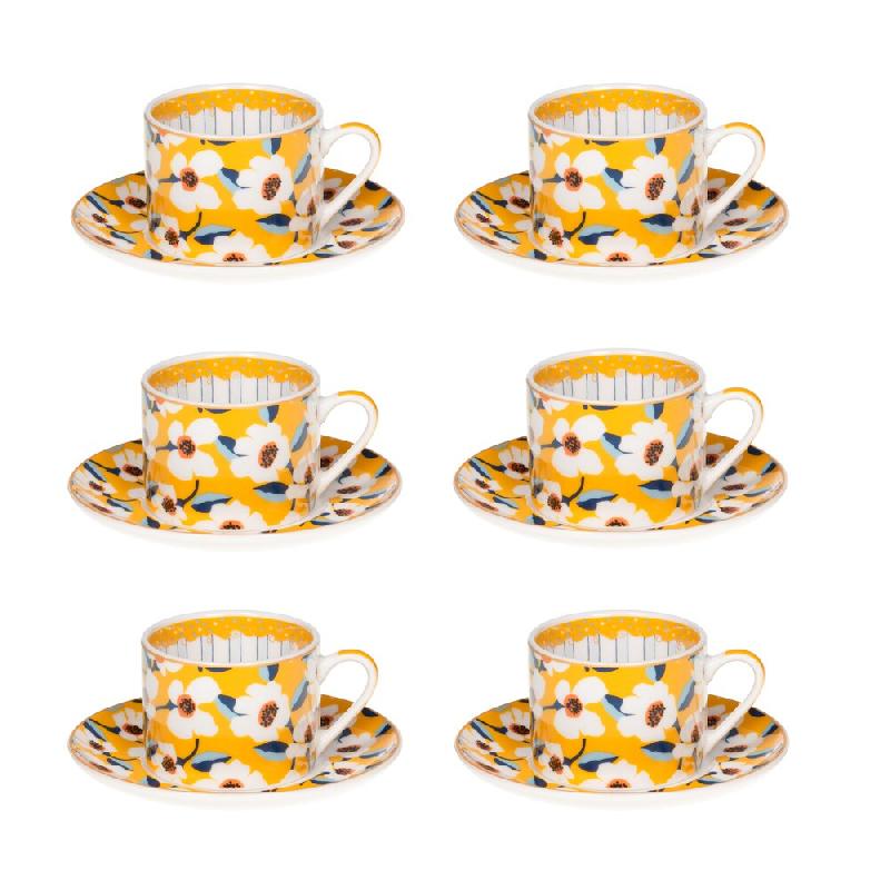 Coffret 6 tasses et sous-tasses Zinnia 8 cl - 8.00 cl Jaune Rond Grès Table Passion 6.00x6.00 cm - jaune Grès 3106232390289