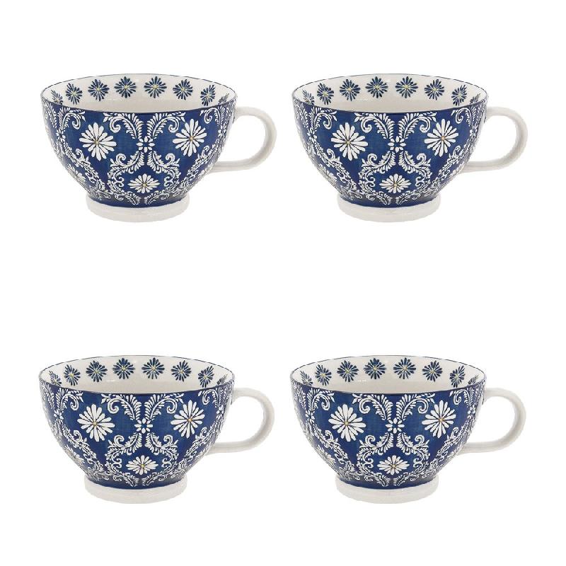 Plongez dans l'élégance avec le Coffret de 4 tasses de la collection Almada, d'une contenance de 36 cl, fabriquées en grès bleu et ornées d'arabesques blanches. Ces tasses allient la beauté artistique à la fonctionnalité, offrant une expérience unique à chaque dégustation. - La finition