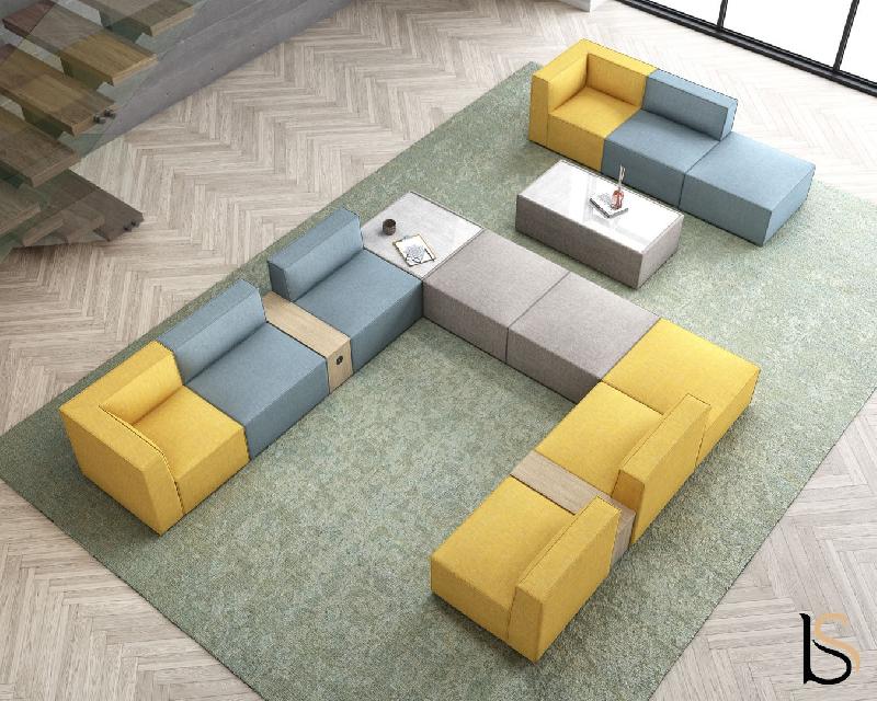 Recevez vos invités avec un canapé de standing ! - Modulable à souhait grâce aux différents composants. - La collection de canapés d'accueil Planer offre une multitude de configurations grâce aux différents modules. - Cette composition offre trois accoudoirs dont un intermédiaire équip