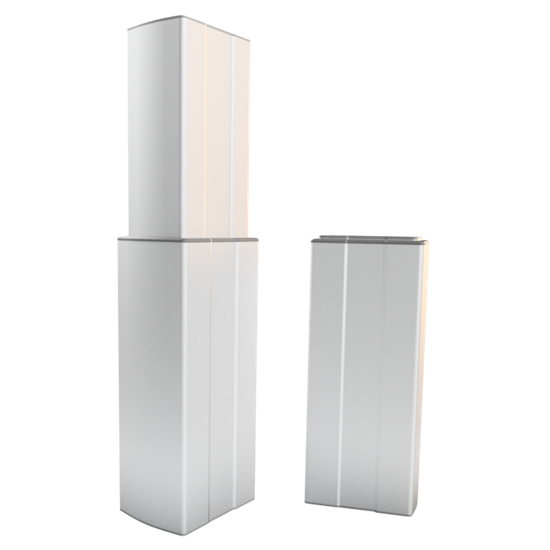 Colonne de Levage Série F - Charge : max. 2 500 N - Course : max. 800 mm - Vitesse max. 35 mm/s - Caractéristiques - Design asymétrique - Très faible friction - Sur mesure - Colonne de Levage Série F - La colonne de levage de la série F est composée de tubes asymétriques et offre un