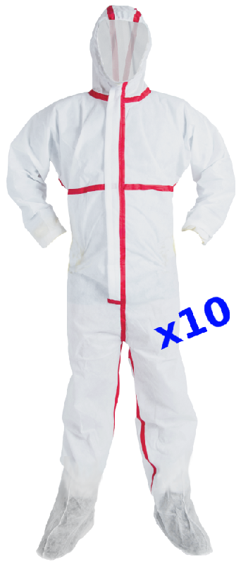 - 1 combinaison - 1 paire de surbottes - 1 paire de gants latex - 1 paire de lunettes LG20 - 1 masque 5321 avec soupape - 2 sacs PE 150 MI (dimensions : 850 x 1000 mm) - 1 adhésif "a" réglementaire - 1 rouleau adhésif (largeur : 50 mm, longueur : 50 mètres) -