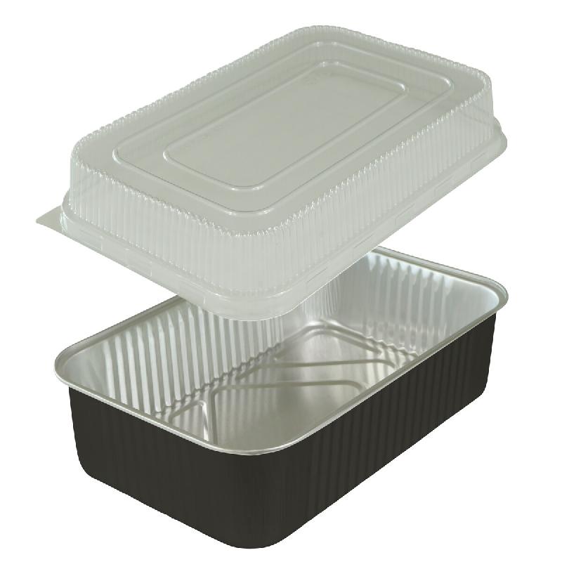 Combo Premium NOVATRAY Plat Alu NOIR 2000ml (293x193mm) + Couvercle PP (H. Totale: 46+24=70mm) - Kit Premium Noir- Lot de 450 - KPR2000N