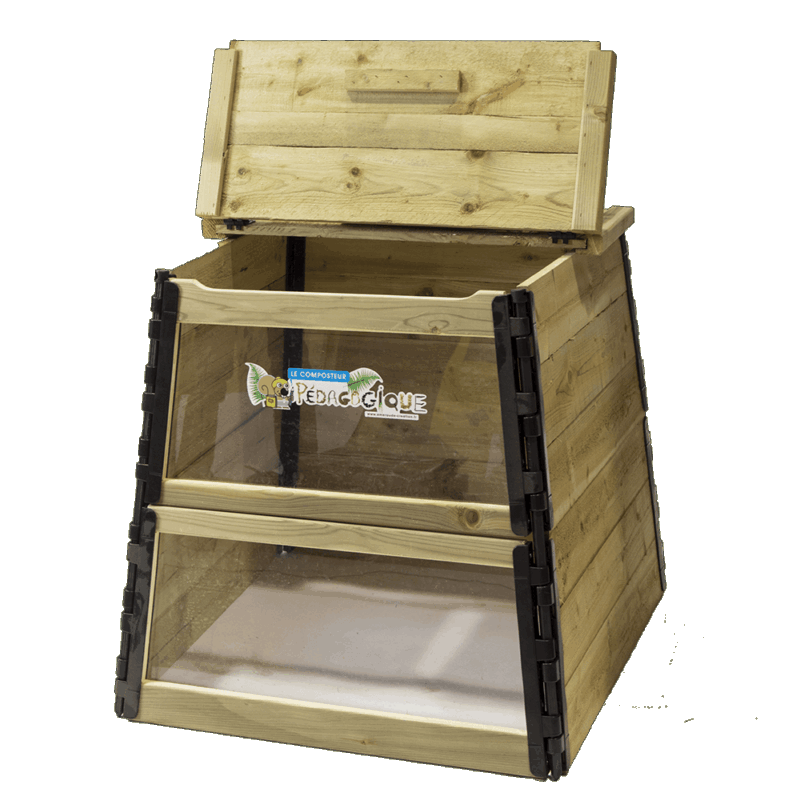 Le composteur pédagogique est décliné en quatre volumes. Il permet de visualiser les différentes couches et les nombreux intervenants dans les dégradations des matières qui formeront au final du compost.