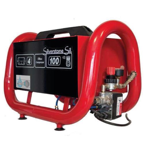 Un compresseur silencieux électrique sans huile adapté aux petits ateliers et garages. La pression du réservoir de 24 litres est assurée par le déclenchement du compresseur au moyen d'un pressostat. La pression maximale est de 8 bars. Le compresseur est alimenté par un moteur électriqu