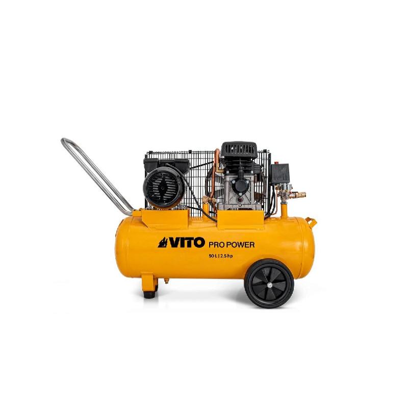 Le compresseur électrique VITO d'une puissance de 1900 W est puissant et résistant, il s'adapte aux travaux les plus exigeants tels que l'agrafage, le soufflage, le gonflage, le nettoyage, le clouage, le perçage, la peintureIl dispose d'un système d'entrainement par courroies du moteur qui assure une plus grande puissance, une plus grande durabilité et moins de vibrations.Son moteur à huile permet au compresseur, une plus longue durée de vie et grâce à sa ventilation intégrée vous pourrez éviter toute surchauffe de l'appareil.Grâce à ces deux roues et sa poignée de transport, vous pourrez le déplacer et le ranger facilement sans trop d'efforts.POINTS FORTS :- SÉCURITÉ MOTEUR : La jauge du contrôle d'huile vous permettra d'éviter tout dysfonctionnements liés au moteur. - MOBILE : Les poignées de transports sont conçues pour déplacer le compresseur facilement lors de vos déplacements professionnels. - PUISSANT : De par ses 2,5 CV, le compresseur VITO dispose d'un système d'entrainement par courroies qui fournit ainsi performance dans les travaux effectués.- UTILISATION FACILE : Il possède des raccords de sortie rapide pour un branchement et une utilisation simple.- Interrupteur Marche/Arrêt. - Soupape de sécurité.- Sortie supérieure du réservoir pour la connexion du réseau fixe. - Protection thermique.CARACTÉRISTIQUES :- Puissance : 2.5 CV / 1900 W.- Vitesse de rotation : 1400 tours/min. - Capacité : 50 L.- Débit d'air : 233 L/min.- Pression : 8 bar / 115 PSI.- Fréquence : 50 Hz.- Voltage : 230 V.- Type de moteur : Monophasé - lubrifié.- Entrainement : Par courroie.- Type d'huile : 15W-40.- Capacité du carter d'huile : 326 ml. - Indice de protection : IP20.- Niveau de puissance sonore : 95 dB(A).- Dimensions : 116 x 37 x 67.5 cm.- Poids : 49.8 kg.- .
