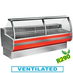 Comptoir vitrine réfrigéré ventilé - vitre bombée relevable - réserve réfrigérée indépendante - modèle CR300/B1-VV/R2