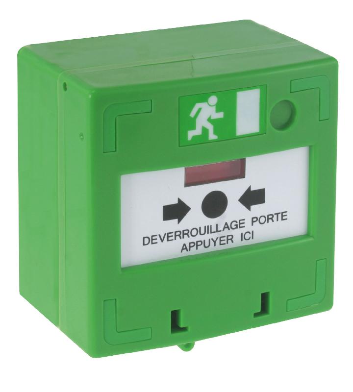 Déclencheur manuel vert NF - 1 contact - Référence : JOD110035 - Marque : Axendis - DESCRIPTION - Ce déclencheur manuel (DM) vert est utilisé pour forcer l'ouverture immédiate des portes automatiques d'issue de secours. - Système d'accès de niveau 0, accessible par tout public. - Inst
