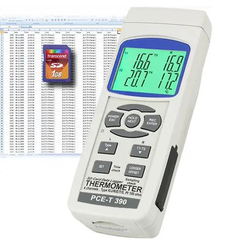Contrôleur de température PCE-T390 - 4 canaux thermocouples et 2 canaux PT100 - Enregistrement sur carte SD