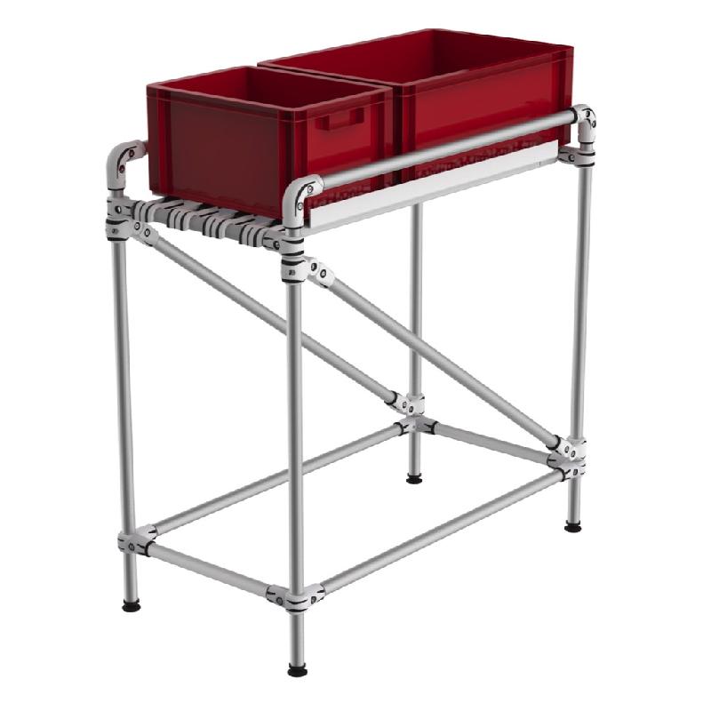 Convoyeur à plat pour transfert. Ideal pour cartons et boite. 1 Niveau ajustable. Structure en Aluminium légère, robuste modualaire et évolutive. Monté sur pieds réglables au sol.