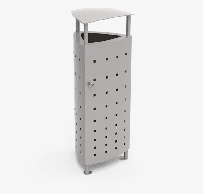- Esthétique: La couleur gris RAL 9006 et les trous carrés découpés au laser confèrent à la corbeille un aspect moderne et élégant, s'intégrant facilement dans différents environnements urbains.