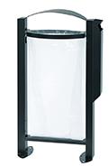 ADAPTÉE AUX VASTES ESPACES, AUX PARCS ET AUX PROMENADES - La corbeille Milenium se décline en trois volumes et trois matériaux - La Milenium 50L en PEHD est fixée à un poteau et possède un couvercle qui peut être équipé d'un cendrier. - La Milenium 80L en fonte d'aluminium est fixée au