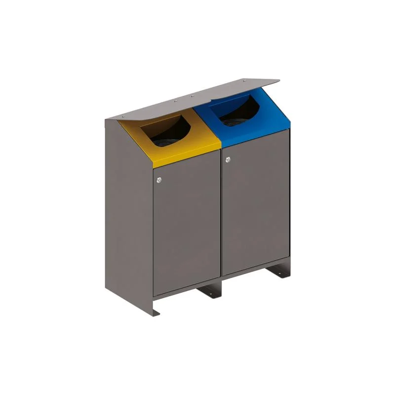 Poubelle d'extérieur pour tri sélectif 2 x 60 LPensée pour les collectivités, entreprises et gestionnaires d'espaces publics, cette poubelle d'extérieur pour tri sélectif 2 x 60 L facilite la collecte séparée des déchets en milieu urbain comme en espaces verts. Son design contemporain et sa