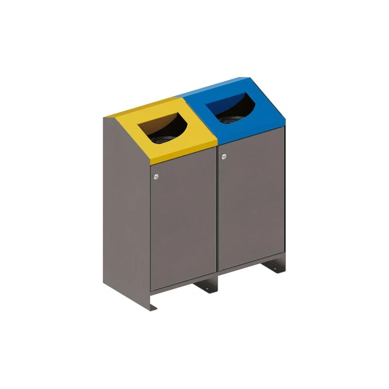Poubelle d'extérieur pour tri sélectif 2 x 60 LPensée pour les collectivités, entreprises et gestionnaires d'espaces publics, cette poubelle d'extérieur pour tri sélectif 2 x 60 L facilite la collecte séparée des déchets en milieu urbain comme en espaces verts. Son design contemporain et sa