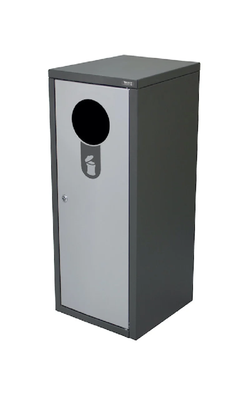 . Couvercle équipée d'une serrure à clé triangle - . Dispose d'un écrase cigarette - . Finition : peint sur acier galvanisé en couleur grise Procity - . Pose par platines - . Contenance : - > reçoit des sacs de 120 litres - . Dimensions : diam. 450 mm x Hauteur 845 mm - . Poids :