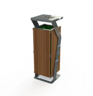 Corbeille avec cendrier intégré en acier et stratifié compact