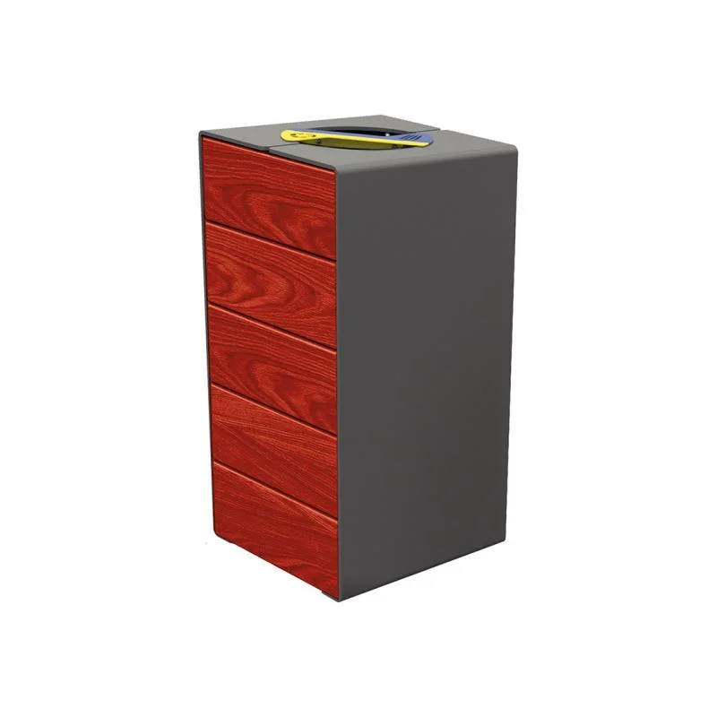 Corbeille KUB tri sélectif - Bois exotique, lasuré acajou